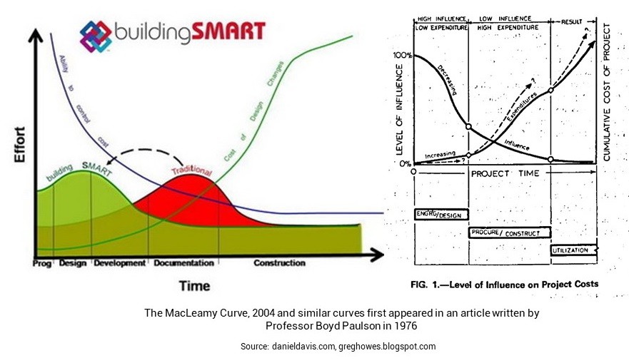 And Patrick MacLeamy, the creator of buildingSMART, becomes famous for claiming to be the first to develop the concept of the McLimie Curve in 2004. However, it later becomes known that the basis of these ideas and similar curves first appeared in an article written by Professor Boyd Paulson in 1976 about 28 years before the “MacLeamy Curve” developed.